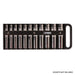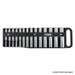 - 3/8-inch drive organizer holds sockets up to 1 inch or 24mm